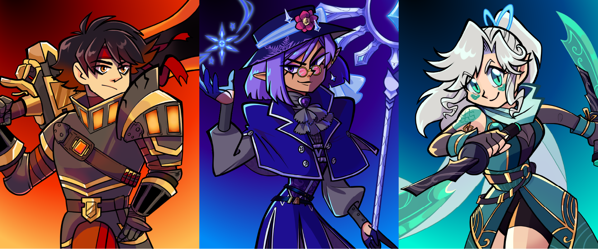 We're a party of 3, adventuring in the colourful land of Prisma.